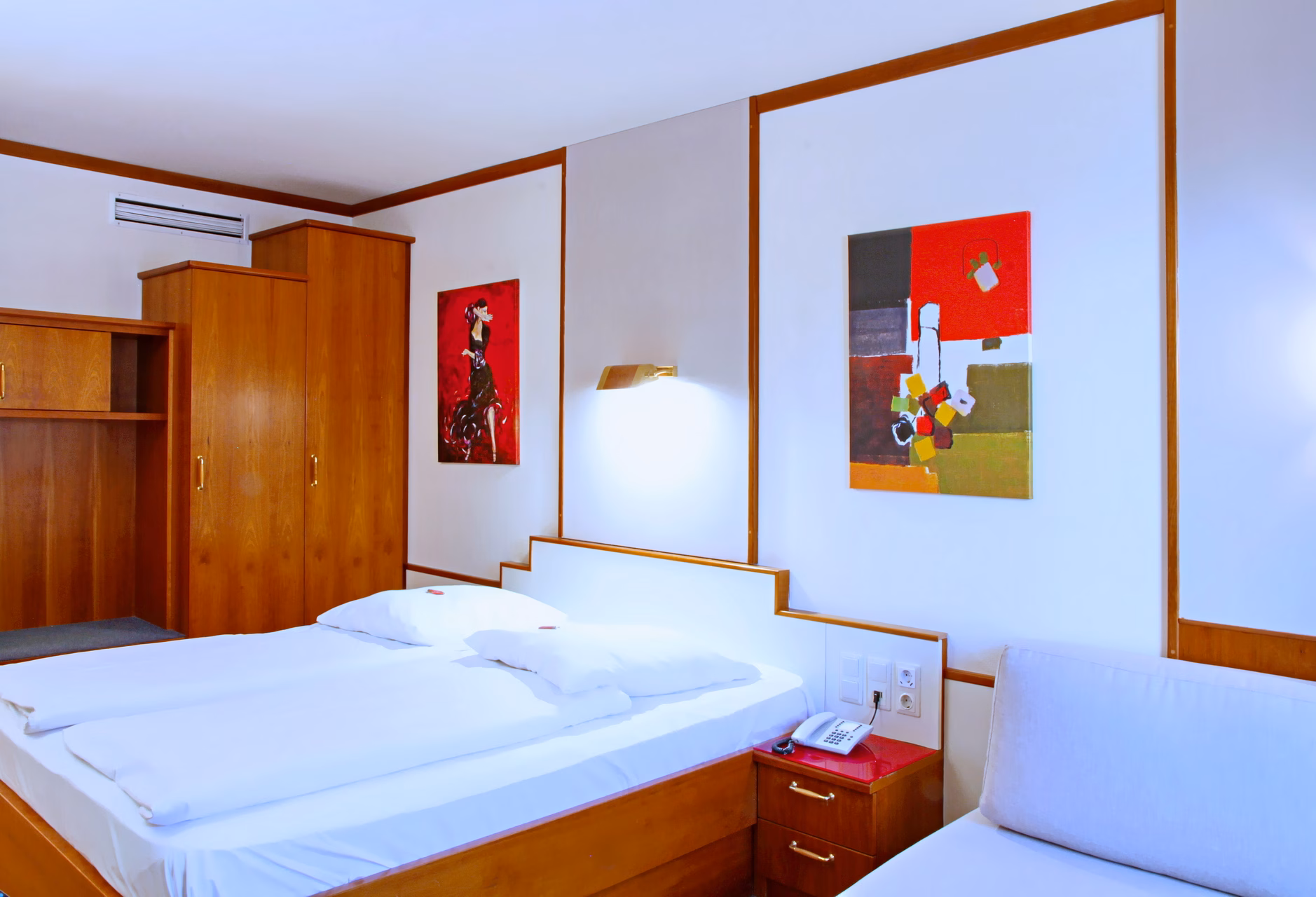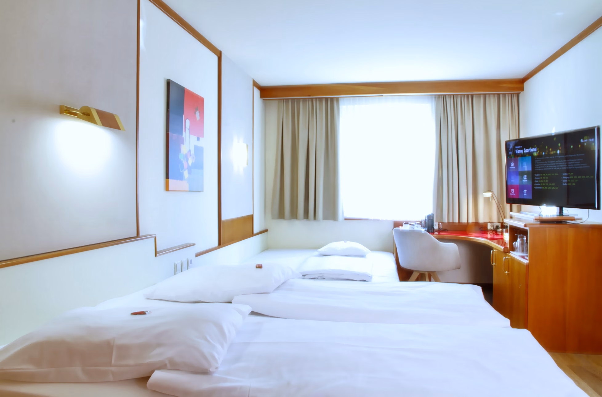 Unsere stilvoll ausgestatteten Businesszimmer haben eine Größe von 20–30 m² und verfügen über reichlich Stauraum und einen großen Schreibtisch sowie Badezimmer und WC getrennt.